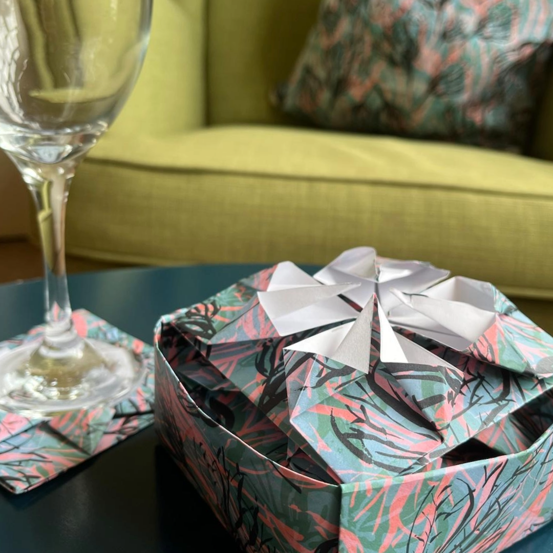 If you are looking to take time out and learn a new skill, then come and join and me for an hour and half where you will learn simple techniques to create beautifully paper crafted paper coasters that sit within an origami box.